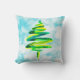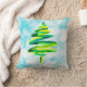 Arbre de Noël bleu aquarelle Jeter oreiller