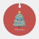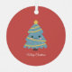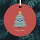 Vous pouvez décorer votre sapin de Noël avec cette décoration en métal. C'est un arbre de Noël mignon et drôle en style kawaii sur un arrière - plan rouge. Vous pouvez aussi facilement changer le texte et en faire un cadeau!