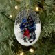 ornement photo de Noël. Accrochez une photo sur l'arbre de Noël à l'aide de cette décoration en céramique ovale. Ajoutez du texte personnalisé au verso avec l'année et d'autres informations personnelles. Téléchargez votre photo préférée pour remplacer l'exemple montré à l'aide du modèle fourni et créer un saké familial magnifique. ..................