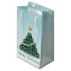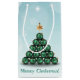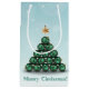 Illustration Abstraite : Des ornements verts et une tête d'étoile dorée construisent un arbre de noël sur un arrière - plan de bokeh bleu clair.