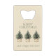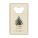 Cet ouvre-bouteille simple et minime de carte de crédit de Noël présente de petits arbres de Noël rustiques aux lumières blanches. Personnalisez avec votre choix de texte spécial à l'avant et à l'arrière. Faites de grandes faveurs de fête personnalisée pour votre événement de vacances.