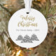 Arbre de Noël moderne Script minimaliste Festive Ornement de famille. Trois simples arbres gris de Noël avec des boules blanches. Le texte Joyeux Noël est dans un script tendance. Customisez avec votre texte.