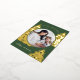Cette belle carte de vacances présente des arbres de Noël en papier d'aluminium avec un accueil de vacances classique sur un arrière - plan vert. Le dos comprend un message de vacances éditable et votre adresse de retour!