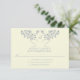 Améliorez votre papeterie mariage avec la carte de réponse Arbre de vie. Cette carte raffinée présente une toile de fond jaune pâle et une représentation de deux branches d'arbres entrelacées ornées de feuilles gris étain, ainsi qu'un monogramme customisé, donnant un air d'élégance à votre événement capital.