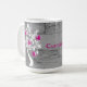 Profitez de votre café du matin avec un Magenta Tree of Hearts Boug café personnalisé. Le design de la musique est composé d'un arbre de coeur en fleurs contre un arrière - plan en bois gris avec un espace à personnaliser avec votre nom. Autres cadeaux disponibles avec ce design ainsi qu'une variété de couleurs.