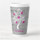 Profitez de votre café du matin ou du soir avec un Magenta Tree of Hearts Latte Mug personnalisé. Le design de la musique est composé d'un arbre de coeur en fleurs contre un arrière - plan en bois gris avec un espace à personnaliser avec votre nom. Autres cadeaux disponibles avec ce design ainsi qu'une variété de couleurs.