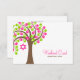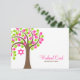 Une carte de boîtier Bat mitzvah à thème Arbre de vie chic et élégant. Montré en rose, vert et marron. Personnalisez facilement votre événement.