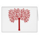 Ces objets sont décorés d'une image stylisée d'un arbre feuillu dans un jeu de couleurs rouge et blanc. Cliquez sur "customisez-le" si vous souhaitez modifier la couleur de l'arrière - plan sur les cartes, boutons ou magnets.