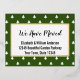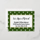 Un motif d'arbres blancs de Noël est sur ce faire-part de vacances vert foncé en mouvement. La ligne supérieure du texte affiché est un script noir qui se lit actuellement "Nous avons déménagé". Vous pouvez modifier le texte si vous le souhaitez. Il y a trois lignes de texte noir en bas pour votre nom et votre nouvelle adresse. Le texte se trouve à l'intérieur d'un rectangle blanc avec une bordure dorée.