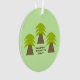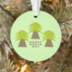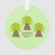 Ce magnifique ornement acrylique présente une image graphique de trois arbres qui ressemblent à des palmiers avec de grandes frondes vertes et un tronc d'arbre brun robuste. Il y a un message en texte marron pour ressembler à du sol sous les arbres. Le message dit Happy Jour des terres.