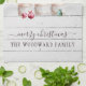 Un thème rustique chaleureux de la ferme des sapins de Noël avec des ornements festifs et joyeux scénario typographie superposé, sur un arrière - plan en bois de shiplap blanchi à la chaux avec la neige tombée. Pour une douce ambiance rustique terreuse et chaleureuse avec typographie moderne pour votre décor de cuisine de vacances. Consultez la collection complète des pièces de correspondance pour cette conception à l'adresse suivante : https://www.zazzle.com/collections/rustic_pine_trees_christmas-119221021302253069