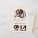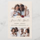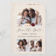 Cette simple et minimaliste carte Save the Date comprend une photo en arc en haut et deux photos carrés en bas. Entre les deux, les mots "Save the Date" apparaissent dans un élégant script d'écriture noire, suivi des noms du couple, date mariage et ville en sans serif police sur un arrière - plan beige. Ajoutez une quatrième photo horizontale avec un message plus détaillé au dos.