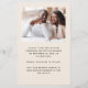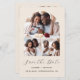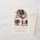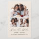 Cette simple et minimaliste carte Save the Date comporte un montage photo avec une photo horizontale en haut et deux photos carrés en bas. Les mots "Save the Date" apparaissent dans un élégant script d'écriture manuscrite noire, suivi des noms du couple, date mariage et ville en sans serif police sur un arrière - plan beige. Ajoutez une quatrième photo horizontale à l'arrière, ainsi qu'un message plus détaillé avec des informations supplémentaires.