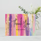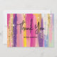 Carte de remerciements avec un design arrière - plan abstrait. Des rayures vives aux couleurs à la fois audacieuses et pastel. Roses, bleus, violets et couleurs jaunes associés à la parties scintillant brillante en faux or superposé