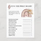Ajoutez du rire et du plaisir au Baby shower Arc-en-ciel Boho avec notre Arc-en-ciel Boho | Devinez Le Prix Bon Baby shower Jeu'. Une façon amusante de tester les compétences de vos invités au sujet des bébés! Obtenez la vôtre aujourd'hui et créez des souvenirs inoubliables!