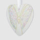 Un ange gardien de lumière blanche a des ailes pliées pour créer un contour en forme de coeur. Les plumes des ailes de l'ange forment aussi des formes cardiaques. Il y a un coeur sur la poitrine de l'ange et un coeur qui plane sur la tête de l'ange comme un halo. La peinture a été rendue avec un crayon aquarelle sur papier. Les produits avec cet ange sont parfaits pour Noël et autres vacances! Personnalisez avec votre propre texte et images en utilisant l'option "Customiser". Faites des cadeaux d'anges gardiens personnalisés, des charmes et d'autres ornements. Les produits soutiennent DonnaBellas Angels a 501(c)3 sans but lucratif. Voir d'autres peintures d'art anges en ligne à DonnaBellasAngels.org