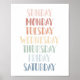 Présentez votre enfant aux jours de la semaine avec cette affiche d'aquarelle à lettres. Décorez un mur de la crèche, de la chambre ou de la salle de jeux de votre enfant avec cette impression éducative pour encourager l'apprentissage quotidien.