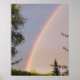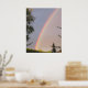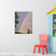 Arc-en-ciel lumineux du soir vu à travers les arbres.