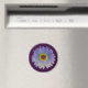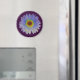 Ce joli aimant présente une photo d'une fleur de marigold manipulée pour créer une fleur magnifique avec un mélange de couleurs de l'arc-en-ciel. La fleur est sur un arrière - plan violet foncé dramatique.