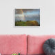 Impression paysage de toile d'un arc-en-ciel et quelques nuages gris foncé sur le phare de Kilauea sur une grande roche dans l'océan Pacifique sur la Rive Nord de Kauai, Hawaii, États-Unis.