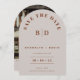 Arc moderne Mariage beige Enregistrer la Carte Date Mariage Arch monogrammes beige enregistrer la carte de date avec un titre d'arc, monogrammes et la photo de couple et le code QR sur le dos. Idéal pour quelqu'un à la recherche d'une forme voûtée enregistrer la date.