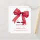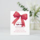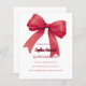 Un arrière - plan blanc, décoré d'un grand arc rouge. Personnalisez et ajoutez un nom et des détails du parti. 1 feuille = 1 invite imprimé bord à bord.