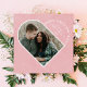 Un cadre photo en arc et un design typographique audacieux travaillent ensemble pour créer cette carte de voeux moderne en forme de coeur pour la Saint-Valentin. Le côté arrière de la carte présente un motif cardiaque simple mais festif.