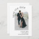 Belle simplicité et style boho artistique font de ce mariage d'arche moderne enregistrer la carte de date pop avec charme. il dispose d'un modèle photo en forme d'arche sur le devant de la carte pour télécharger votre photo désirée. Il y a un modèle texte sur le devant de la carte pour personnaliser avec les noms de la mariée et du marié et la date de mariage prévue. Le dos de cette carte contient un exemple de message avec des détails supplémentaires à personnaliser. Montrée ici avec un arrière - plan blanc clair, cette carte est également disponible en d'autres couleurs.