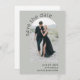 Belle simplicité et style boho artistique font de ce mariage d'arche moderne enregistrer la carte de date pop avec charme. il dispose d'un modèle photo en forme d'arche sur le devant de la carte pour télécharger votre photo désirée. Il y a un modèle texte sur le devant de la carte pour personnaliser avec les noms de la mariée et du marié et la date de mariage prévue. Le dos de cette carte contient un exemple de message avec des détails supplémentaires à personnaliser. Montrée ici avec un arrière - plan vert sauge clair, cette carte est également disponible en d'autres couleurs.