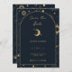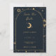 Conçu pour se coordonner avec notre collection mystique céleste, cette carte unique personnalisable de sauvegarde de la date d'invitation présente de magnifiques éléments célestes d'or sur un arrière - plan de marine sombre avec une bordure en arc. Pour une personnalisation plus avancée de cette conception, par exemple la modification de la disposition, de la police ou de la taille du texte, cliquez sur le bouton "PERSONNALISER" ci-dessus. Veuillez me contacter pour toute question !