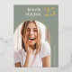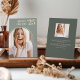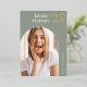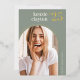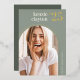Le faire-part moderne de graduation de photo comporte une photo verticale ou portrait orientée dans un agencement unique en arche, sur un arrière - plan vert sauge avec garniture en feuille d'or. Le nom du diplômé et l'année de fin d'études apparaissent en haut, avec le nom de l'école en bas à droite. Ajoutez un message personnel à l'arrière, ainsi qu'une photo supplémentaire.