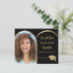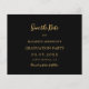 Une photo Enregistrer la date pour une fête de remise de diplômes. Sur le devant : Ajoutez votre propre photo verticale du diplômé. Un cadre d'arc photo en faux or. Un arrière - plan noir classique, un texte doré. Modèles pour un nom et une date. Le nom et le texte : Save the Date sont écrits avec un script de style manuscrit moderne. Avec un casquette, garnir de bon goût. Retour : détails de la fête. 1 feuille = 1 Enregistrer la date d'impression arête à arête.