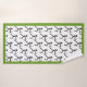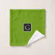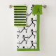 Archer avec son arc rayures noires et vertes et monogramme monocartrique à l'arc de toilette ensemble. affichant une icône minimaliste d'une silhouette noire d'un archer avec bordure verte. Le linge de toilette est vert avec votre monogramme tandis que le linge de toilette comprend un motif rayé avec des rayures vertes, noires et blanches.