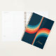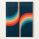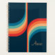 Retro double arche pattern geometrical illustration with turquoise, blue, red and beige stripes decoration on dark blue background. Add your name/monogram or delete the text