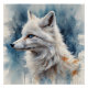Un Renard arctique avec une aquarelle détaillée aux yeux expressifs est représenté contre un arrière - plan doux et flou. Les couleurs naturelles rehaussent l'aspect vivant.