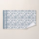 Un joli cercle bleu gris ardoise stylisé à motifs floraux serviette de bain ensemble avec une belle symétrie et une bordure bleue répétée. Un motif géométrique abstrait simple et moderne.