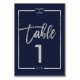 La typographie argentée sur la demi-trame marine bleu argent personnalisable, et les bandes géométriques faux mariage de numéro de table chic, parfait pour mariage élégant,