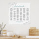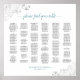 Ce magnifique tableau de sièges mariage présente du texte turquoise et gris sur un arrière - plan blanc avec assignation de sièges pour 200 à 240 personnes. Il présente un design sobre mais élégant et élégant, avec des filigree argentée en faux feuille orné dans les coins. Le titre est écrit en calligraphie de script et dit : S'il vous plaît trouver votre table.