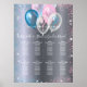 Un arrière - plan faux argenté. Décoré de ballons bleus, roses et blancs et de faux éclats bleus et roses. Personnalisez et ajoutez le(s) nom(s) et nom(s) de vos invités. Pour 8 tables. Texte blanc.