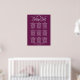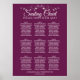 Faites de votre réception de mariage une belle avec ce tableau de 9 places. Il présente un design simple mais élégant avec du texte blanc sur un arrière - plan de couleur violet ou magenta avec une bordure florale en faux feuille argent. Ce graphique montre les affectations de table pour 90 invités.