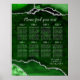 Ce tableau élégant et glamour de table mariage dispose d'un arrière - plan en marbre vert agate avec des accents de parties scintillant faux argent. Le texte combine écriture manuscrite et polices sans serif modernes pour un look élégant et sophistiqué. Il conviendra parfaitement aux mariages d'automne et d'hiver.