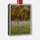 Un souvenir ornemental avec un couple d'Elcs broute un champ sur un automne froid matin d'automne avec un brouillard persistant. Le grand wapiti mange de l'herbe tandis que le wapiti féminin regarde. C'est à Boxley Valley, Arkansas, USA. Vous recherchez plus de produits ? Visitez mon magasin : http://www.zazzle.com/timelessmomentsphtgy Photo prise par Jennifer White with Timeless Moments Photography. Toutes les images sont copyright. wapiti, taureau mâle, vache femelle, faune, vallée de boxley, arkansas de ponca, saison d'automne, automne, ozarks, chasseur