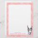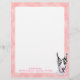 Un chiot Dogue Allemand arlequin aux oreilles coupées orne ce design rose.