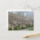 Carte postale de l'Arlington Row, cottages tissulaires couleur miel dans le brouillard matinal dans la ville de Bibury, les Cotswolds en Angleterre, Royaume-Uni.