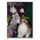 Lapin Holland Lop avec fleurs violettes et lavandes