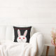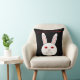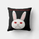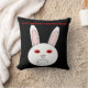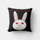 Ce coussin impressionnant présente le triste visage d'un lapin blanc. Ce lapin a une grosse fronde sur son visage parce qu'il est un lapin de laboratoire qui a fait l'objet de tests cosmétiques. Les blancs de ses yeux sont rouges et enflés. Le design a été conçu pour attirer l'attention sur les souffrances inutiles causées par les tests de cosmétiques sur les animaux. Le texte rouge gras dit "arrêtez les tests sur les animaux maintenant !"
