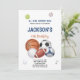 Célébrez votre étoile avec style grâce à cette Invitation d'Anniversaire de Sport Blanc audacieuse et moderne ! Doté d'un arrière - plan blanc immaculé et d'illustrations colorées de balles de basket, de balles de foot et de balles de football, cet invitation éditable est parfait pour les enfants énergiques qui aiment tout le sport. Personnalisez facilement avec le nom, l’âge, la date, l’heure, l’emplacement et le RSVP de votre enfant pour créer une invitation dynamique qui permet à chacun de se préparer à jouer. Parfait Pour : ⚪ Boys's all-sport fête d'anniversaire 🏀 ⚽ célébrations sportives, extérieures ou de gym 🎉 thème sportif propre et coloré