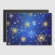 Arrière - plan de Noël bleu avec des flocons de neige en or et bijoux blancs. Des flocons dorés. XMAS.