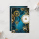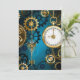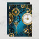 Arrière - plan turquoise, texturé, steampunk avec des engrenages en laiton et or, une clé en argent et l'horloge. Style Steampunk.