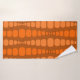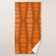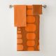 Cet ensemble de serviettes a un design moderne du milieu du siècle de rectangles arrondis dans deux tons d'orange courant verticalement sur un champ de marron.